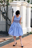 Note: This dress has been photographed with 50s style white petticoat to show the fullness of the skirt.