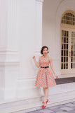 Do note that this dress was photographed with 50s style tulle slip to show the fullness of the skirt and does not come with the tulle slip nor the belt.