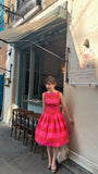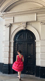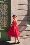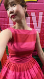 Diana in navy and orange poppy and the classic black version are both sold out. This dress is inspired by a true vintage pattern and this fabric in red and pink stripes is actually the closest to the original pattern seen on the cover.