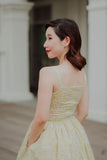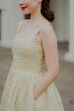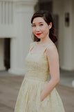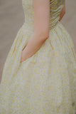 This square neck lined dress comes decorative buttons in front, two hidden pockets and a concealed zipper at the back.