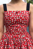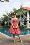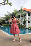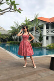 This square neck lined cat print dress comes decorative buttons in front, two hidden pockets and a concealed zipper at the back.