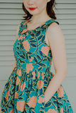 Note: This dress has been photographed with 50s style white petticoat to show the fullness of the skirt.