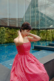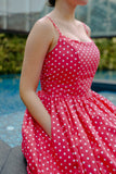 Vintage 1950s silhouette with adjustable spaghetti strap and fully boned bodice.