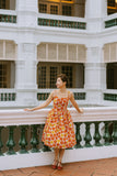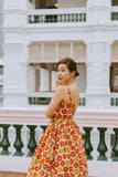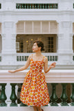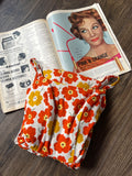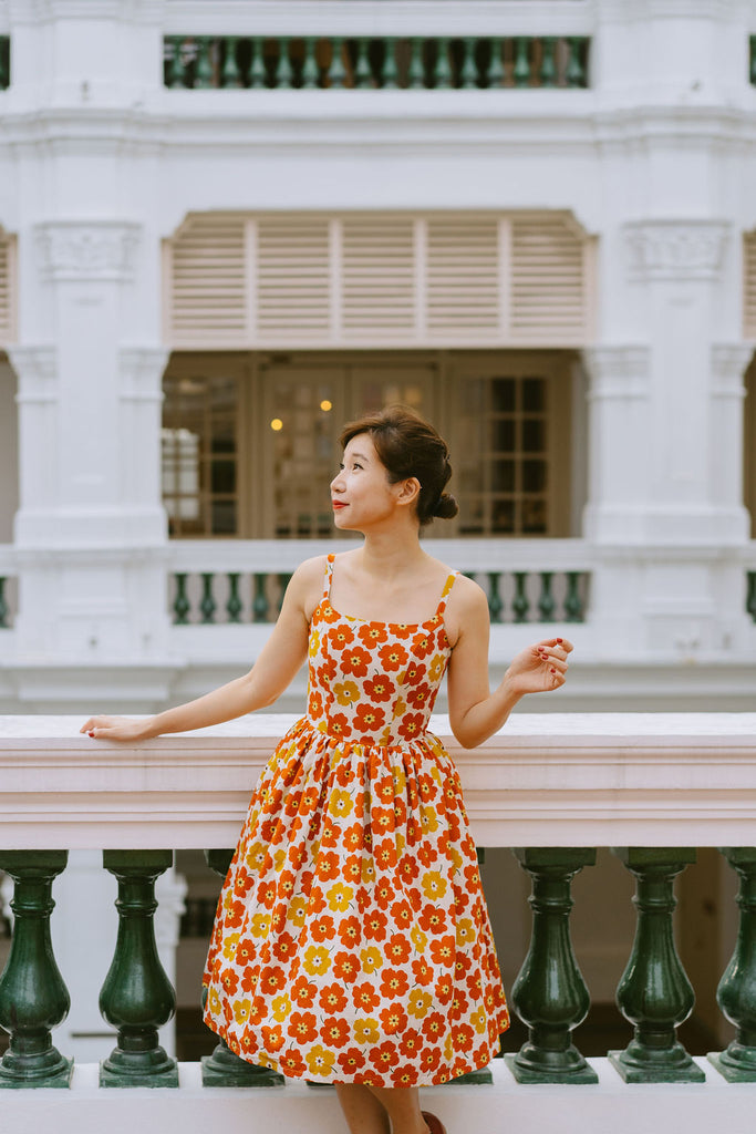 Vintage 1950s silhouette with adjustable spaghetti strap, fully lined and boned bodice.