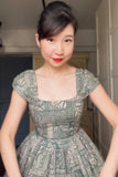 Do note that this dress was photographed with 50s style tulle slip to show the fullness of the skirt and does not come with the tulle slip.