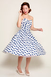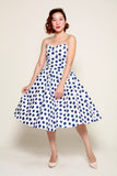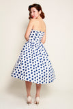 Jane Swing Dress in White & Navy Polka
