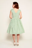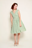 Classy and timeless would be the words used to describe this V neck vintage inspired dress that was slightly tweaked from its original 1950s pattern. Here's the mint version in thinner stripes.