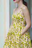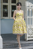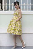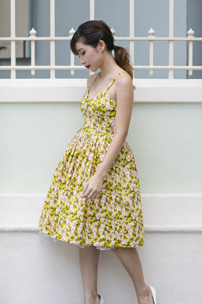 Vintage 1950s silhouette with v neckline and spaghetti strap made with 100% cotton fabric in the most gorgeous print.