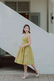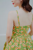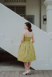 Vintage 1950s silhouette with v neckline and spaghetti strap made with 100% cotton fabric in fox print.