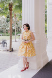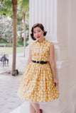 It has mandarin collar and decorative buttons running down the front as well in adorable lemon print.