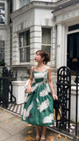 Vintage 1950s silhouette with adjustable spaghetti strap, fully lined and boned bodice.