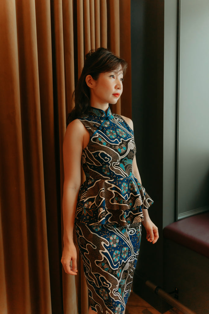 The beauty of this piece is you don't get to just wear it for Lunar New Year, wedding photoshoot or tea ceremony. You can pair the top with jeans and style it more casually or pair the pencil skirt with a top for work.