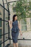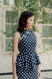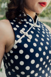 Yu Yan 2 Piece Cheongsam in Navy Polkadot