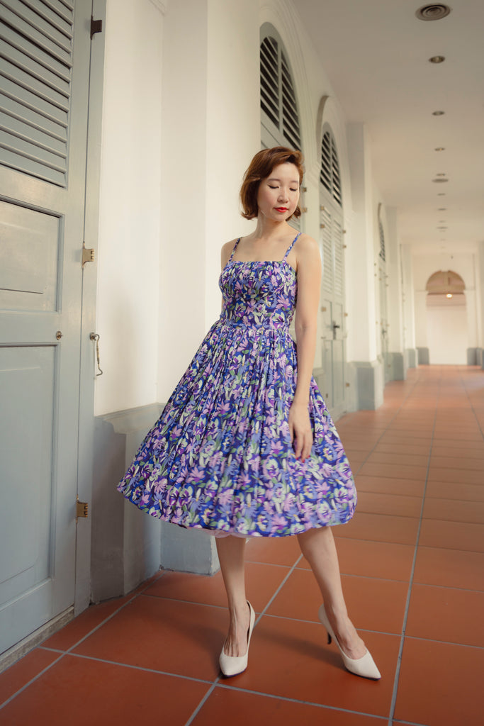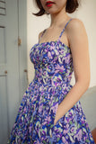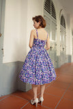 French Purple Floral Summer Swing Dress