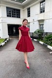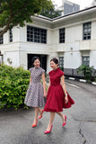 Ah Keow has a circle skirt and comes with two hidden pockets. It has an invisible zippers and two hooks at the back of the dress.
