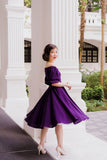 Bridgitte Puff Sleeve Dress in Royal Purple