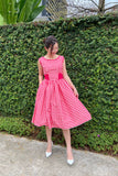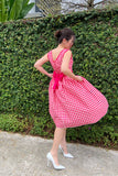 This dress is inspired by a true vintage piece that had me obsessed with the sash at the waist as it creates the illusion of a smaller waist. It has a circle skirt and is fully lined. There is a zip fastening at the back and comes with 2 hidden pockets.